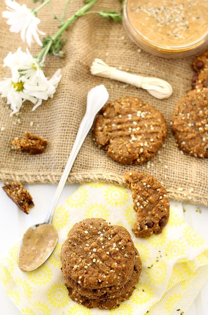 With just 4 basic ingredients and 3 optional ad-ins, these Almond Butter Hemp Seed Cookies couldn’t get easier! They’re made from clean ingredients, are high in protein and make a heart-healthy alternative to junk-filled cookies.
