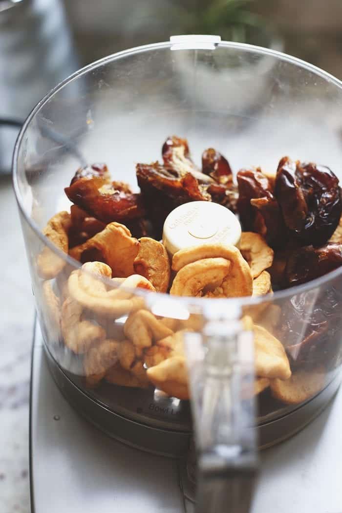 STEP 2: Add in the cashews and process until the dates, apples and cashews come together in a sticky ball.