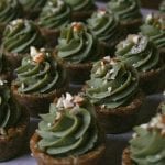 *Alternatively, for tarts like in the photos, use a mini silicone muffin tray and press about 1 tbsp of crust into each muffin cup. You can either pour the filling into each tart shell, or for a fancier look, use a piping bag and pipe it in. For piping though, the filling needs to set overnight in the refrigerator so it can firm up. Once the filling is in each tart shell, let mini tarts set in the freezer overnight.
