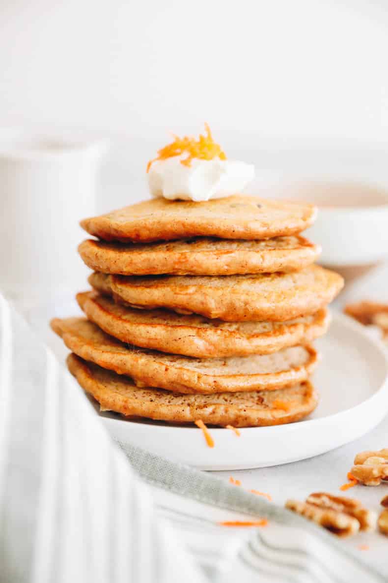 Great for Meal Prep. These carrot cake pancakes freeze super well so they’re a great thing to meal prep one day to have a healthy prepared breakfast.