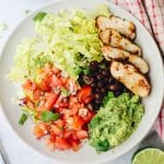 What I love most about this chipotle burrito bowl recipe is that it can be as quick or involved as you want it to be. If you’re short on time you can buy store-bought versions of salsa, guac and even rotisserie chicken. If you’re more of a “from scratch” type of person I’ve included recipes for each.