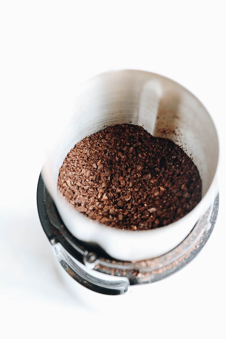 I use high-quality dark roast coffee from a local coffee shop but you can use whatever you prefer. Typically dark roast has less caffeine than light or medium roast coffee.
