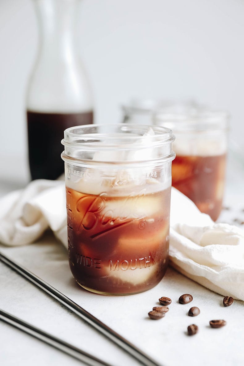Making cold brew coffee doesn’t require any industrial equipment. You’ll need just a few jars or containers (mason jars work great!) and a few other items to make this cold brew coffee recipe.