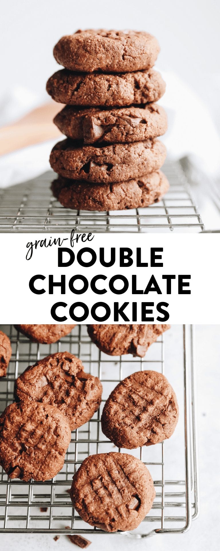I don’t know how to accurately describe my love for these cookies. They are the ultimate cookie recipe that are soft and chewy but crispy along the edges. You probably won’t believe me when I tell you they’re grain-free and made with only six ingredients. These double chocolate chip cookies are the real deal and I can’t wait for you to try them!