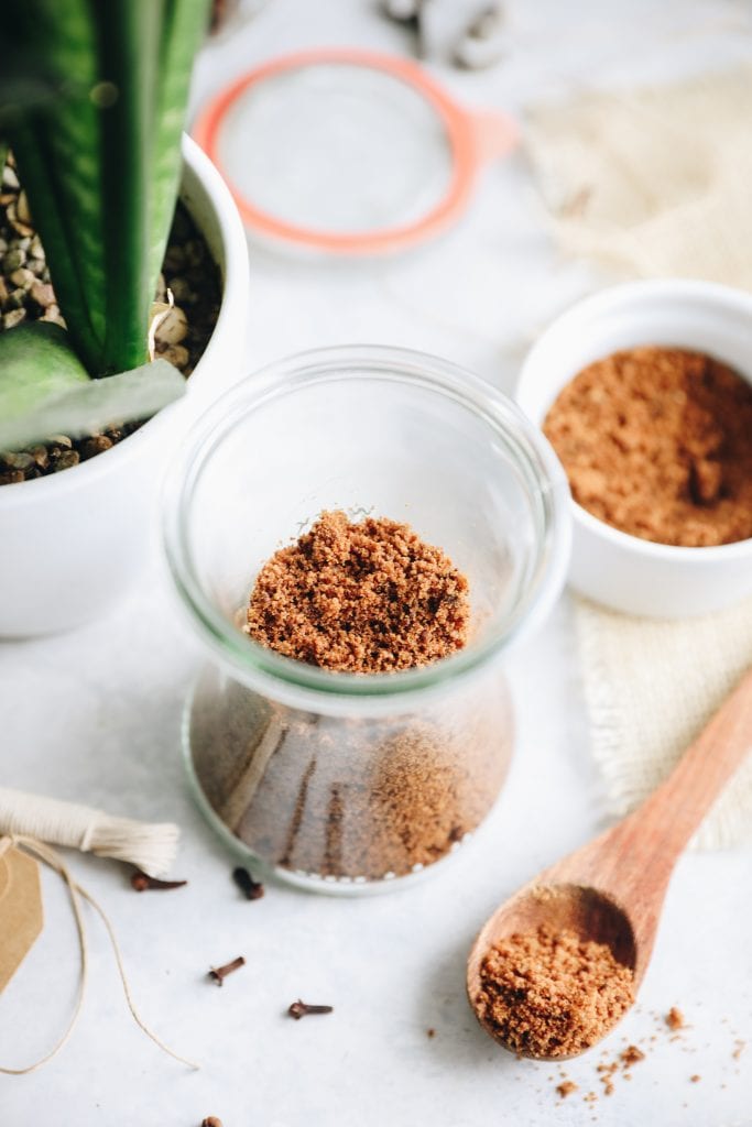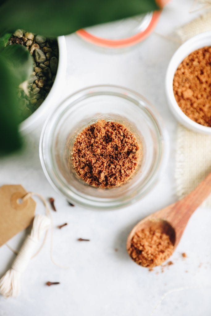 I find this gingerbread sugar scrub will last for a couple of months in a sealed mason jar though to be honest, it’s usually gone for me in a few weeks. Depending on how much of your body you scrub and how much you use, you should get 3-6 uses out of this recipe, but feel free to double or triple – especially if gifting to friends and family.