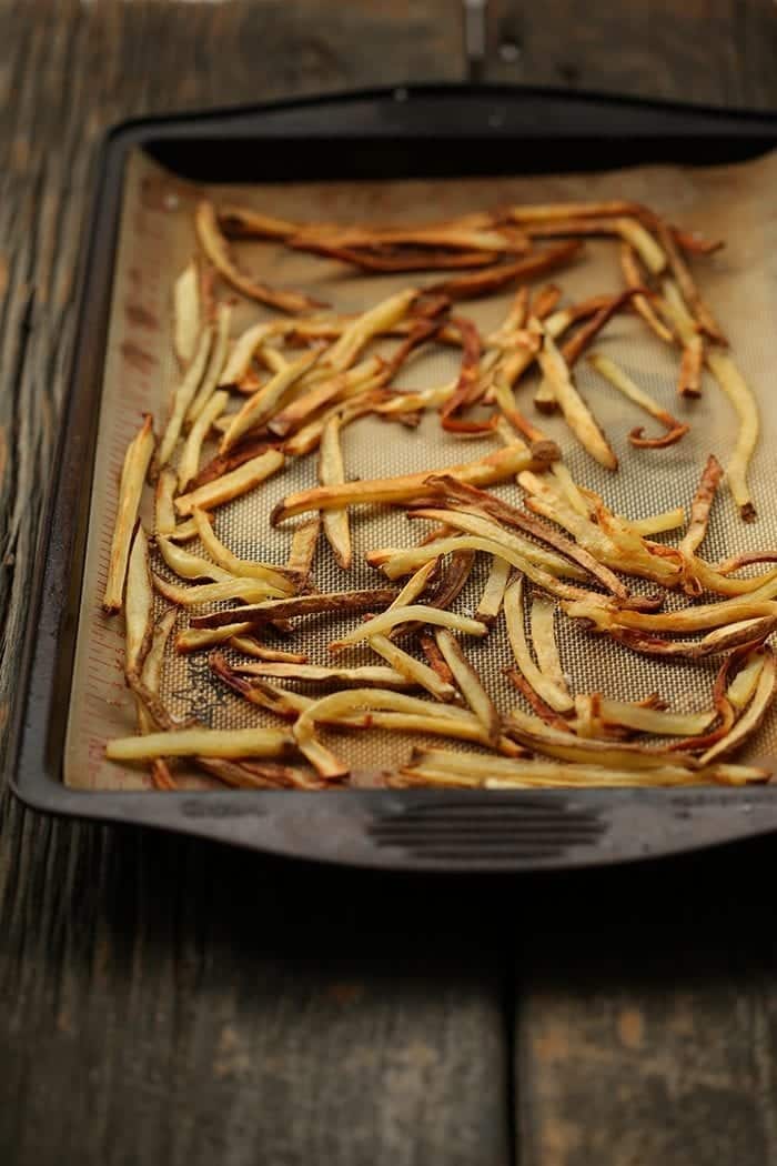 The trick to making the perfect crispy baked french fries is avocado oil.
