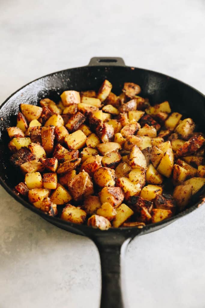 Quick Version (15 minutes): involves microwaving the potatoes and then pan roasting them on the stovetop. This method won’t be quite as crispy but it’s MUCH faster and still delicious!