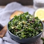 - Lemon – Not only does it add flavor but it also contains vitamin C which can help boost iron absorption from kale leaves (source). Lemon is also used in the dressing.