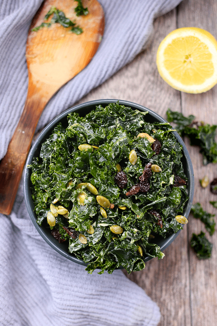 - It Tastes Great – Kale paired with this creamy lemon tahini has delicious flavor with a little crunch from pepitas and sweetness from cherries.