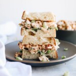 1. Sandwich – Just scoop about 1 cup of this turkey salad onto your favorite bread. Option to add lettuce or extra onion. Bonus points if you put it on a croissant – yum!