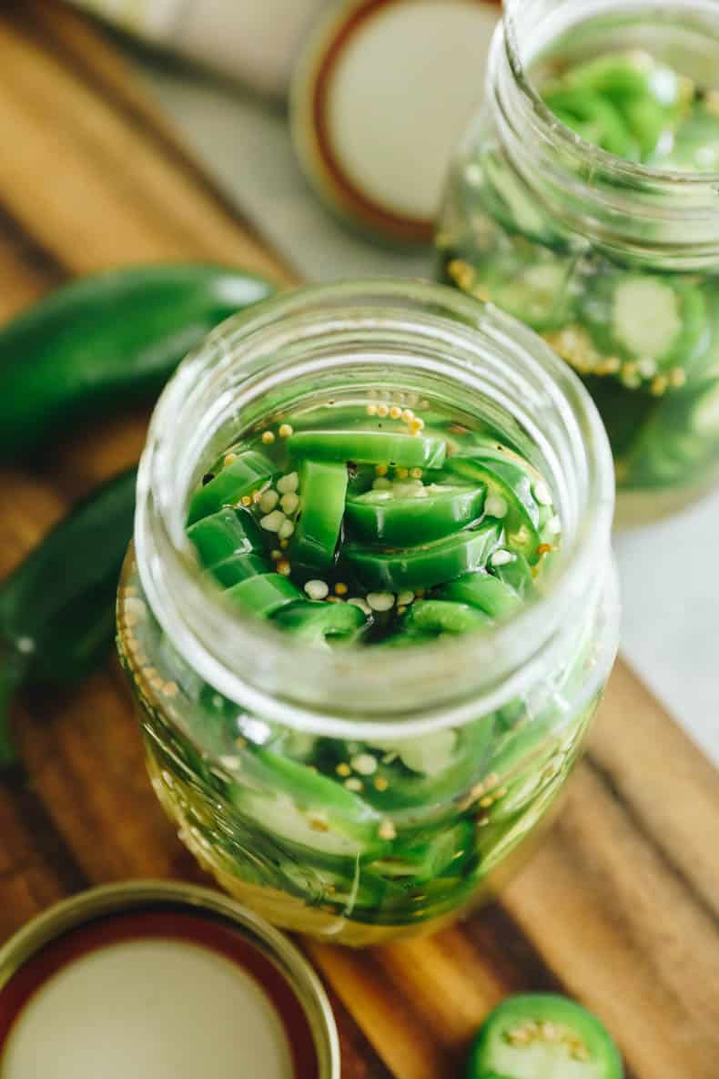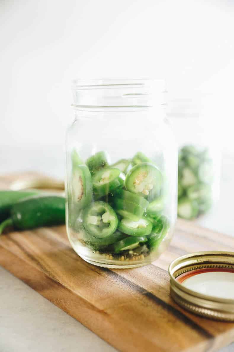 Refrigerator – place pickled jalapenos in a sealed container or mason jar with a tight-fitting lid in the fridge for up to 2 weeks.