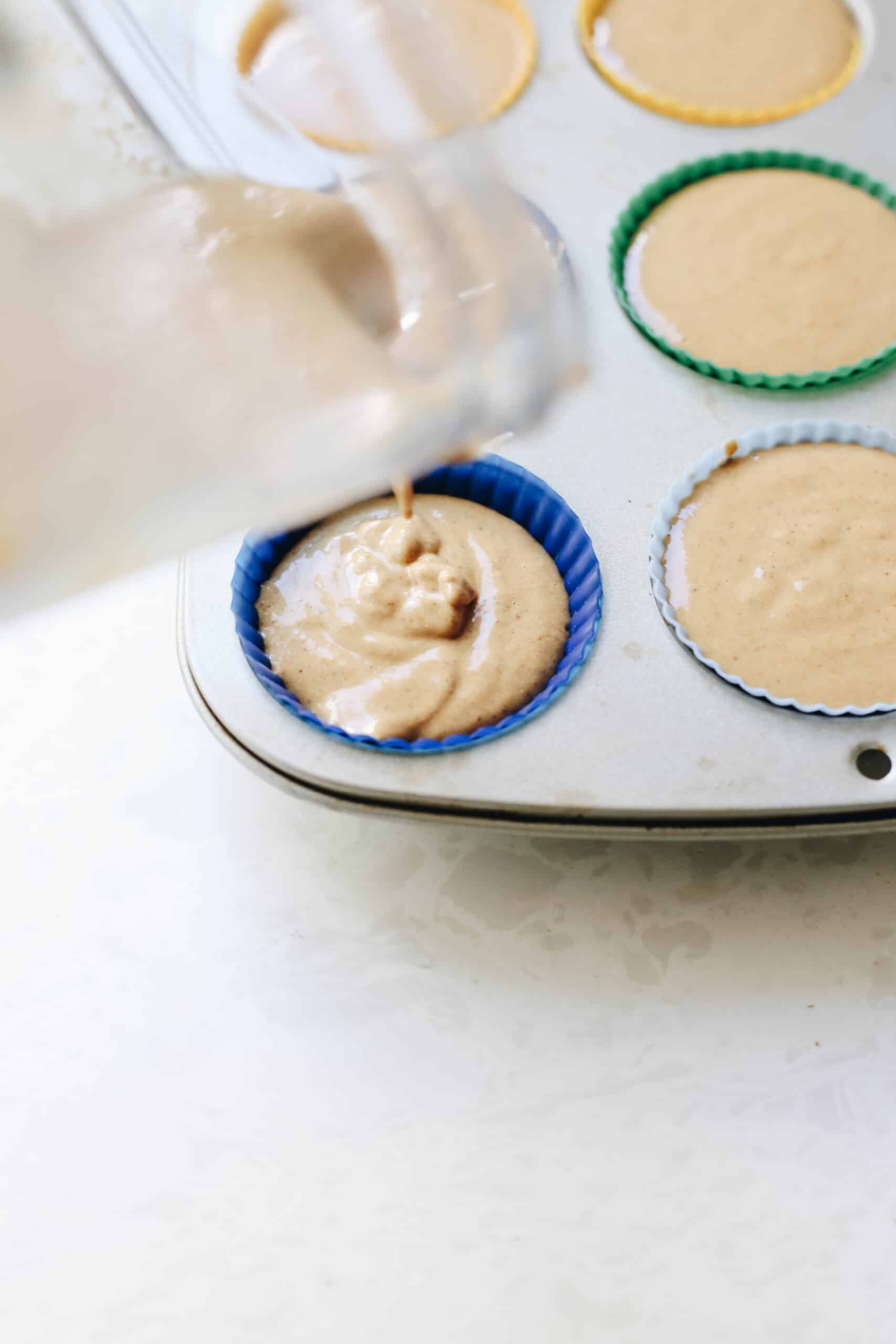 Pour the batter into a muffin tin that has been greased or lined. The cups should be almost completely full and should fill all 12!
