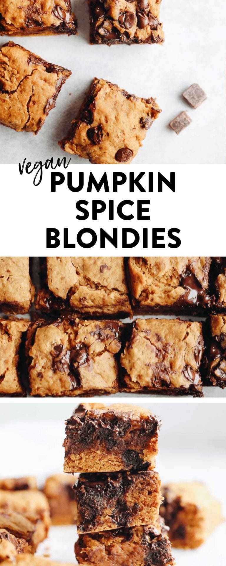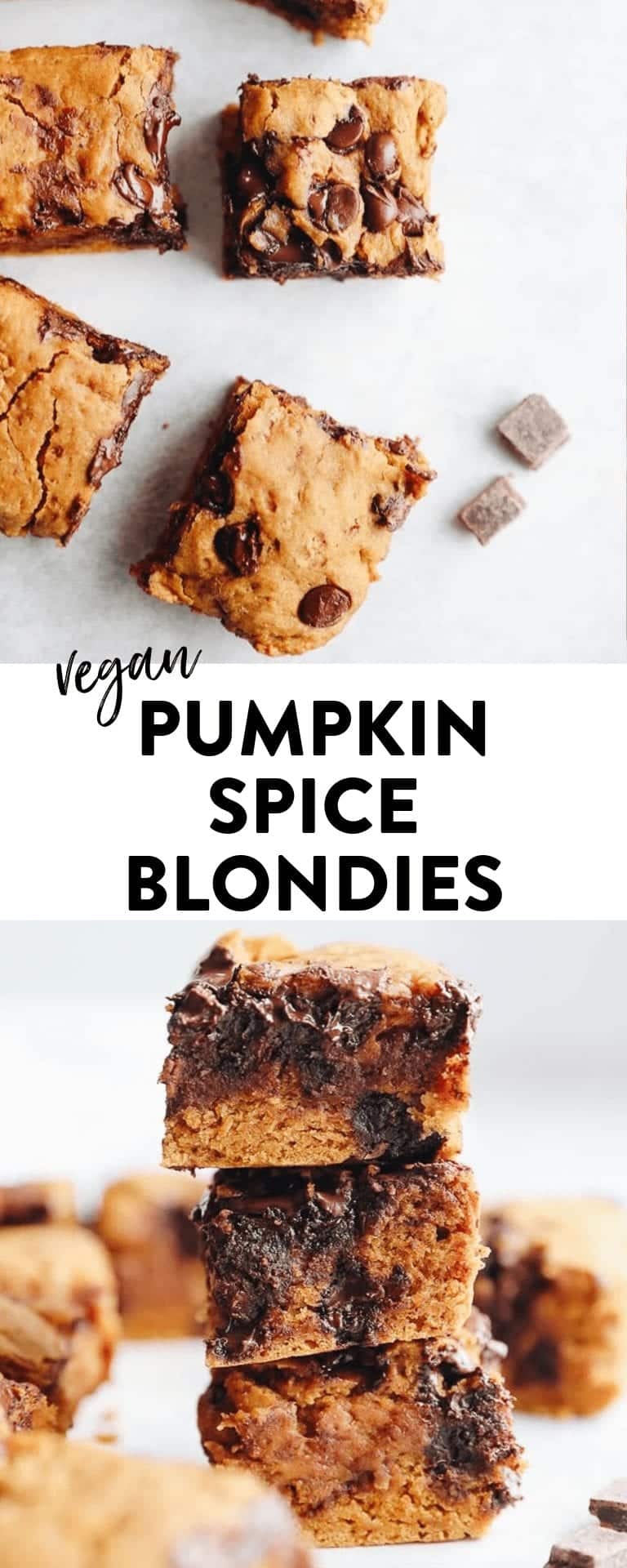 Taste the best of fall with this pumpkin spice blondies recipe! The perfect seasonal dessert made with canned pumpkin (or fresh!), pumpkin pie spices and made entirely vegan with a gluten-free option. Vegan blondies have never tasted so good.