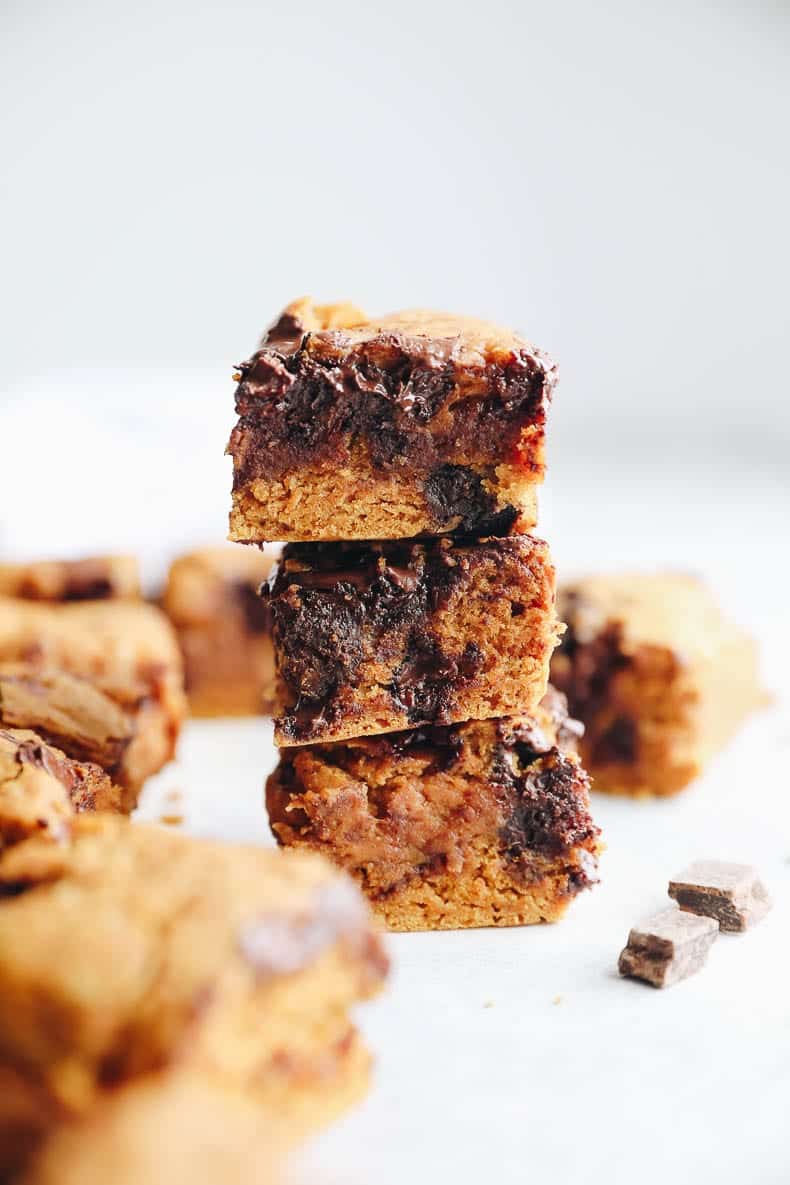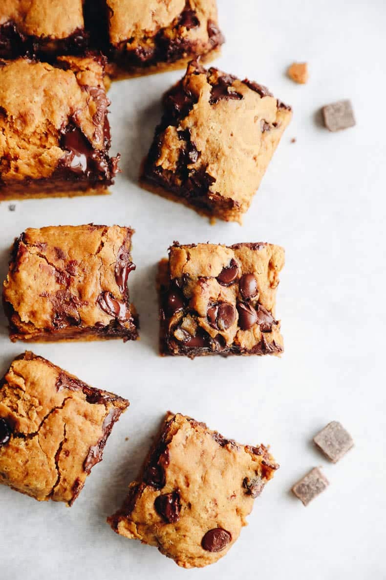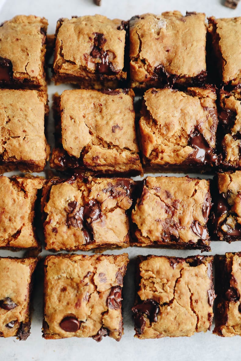 Feel free to use whatever non-dairy milk you enjoy. I think coconut milk would taste delicious in this vegan blondies recipe. You can also sub whole wheat flour but you may need to reduce the amount slightly as it tends to be more absorbent. For non-dairy chocolate chips I like these ones but feel free to change it up and add in a 1/2 cup of your favorite add-ins.