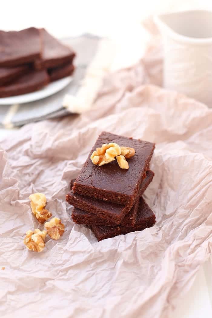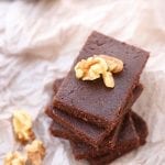 4 ingredients is all you need to make these Raw Walnut Brownies. They’re gluten-free, vegan, paleo and refined-sugar-free but still taste incredible! Plus they take just 5 minutes to whip up.