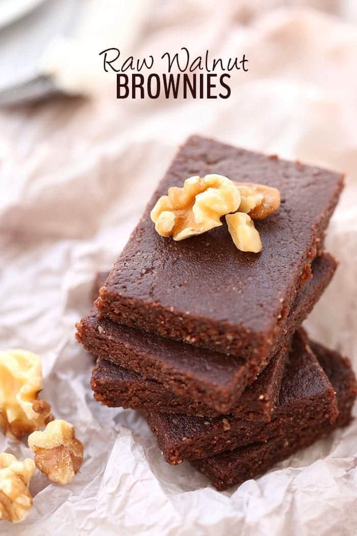 This recipe for Raw Walnut Brownies actually came out of another recipe I developed for Avocados from Mexico. It was part of the crust of a no-bake cheesecake I made and even though I could eat like 15 of them at once, I kept finding myself going for the crust first.
