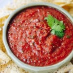 Get the best of your favorite Mexican restaurant with this restaurant style salsa recipe. Made with simple ingredients and ready in minutes, this restaurant salsa pairs perfectly with homemade tortilla chips and spicy margaritas!