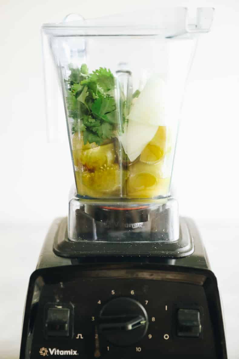 This homemade salsa verde recipe is actually fairly straightforward to make. The most important step is roasting the tomatillos and jalapeños. The rest comes together in the blender or food processor.