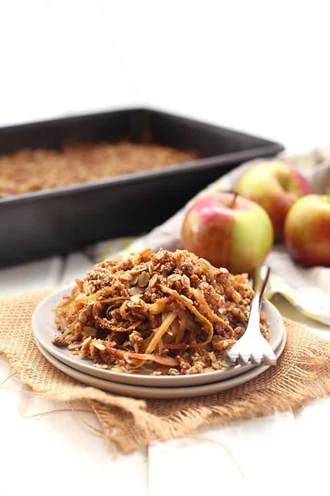 You betcha! (<–can you tell my husband is Minnesotan?!). Not only is this apple crumble spiralized, but it’s also made with healthier ingredients. Here are the healthy swaps I made: