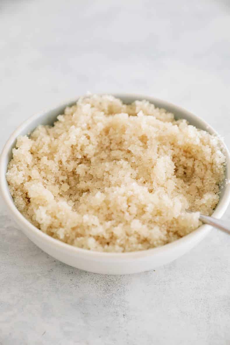 - Turbinado sugar – this is a very coarse, less-refined type of sugar. I find these sugar granules to be a bit harsh so I tend to prefer other varieties but this works if that’s all you have.