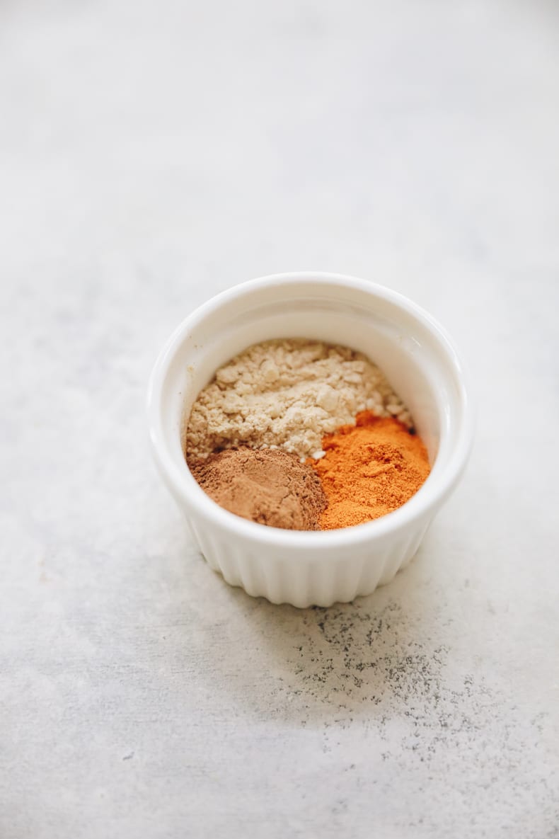 - Ground turmeric – The real star of this show (sorry other ingredients!) is turmeric. It is anti-inflammatory and an antioxidant. The active ingredient, curcumin, has a bunch of scientifically proven health benefits like improving depression and chronic diseases. The superfood of all superfoods! (Source)
