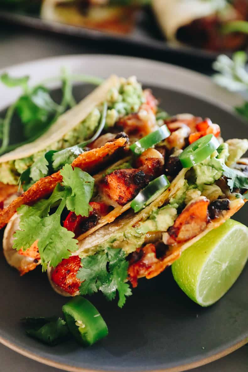 Sweet potatoes are so versatile and can be used in a wide array of both sweet and savory recipes. I also love using them in vegetarian recipes since they’re a nice hearty veggie that keeps you feeling full. Paired with the protein from black beans, these sweet potato and black bean tacos are the perfect vegetarian taco recipe.