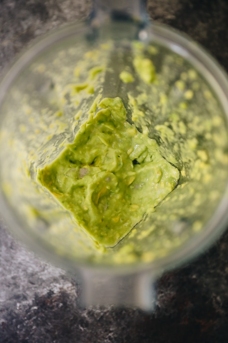 - Combine avocado, lime juice, scallion, garlic, cumin, sea salt and water in a blender or food processor and process until well-combined and a “cream” consistency has been reached.