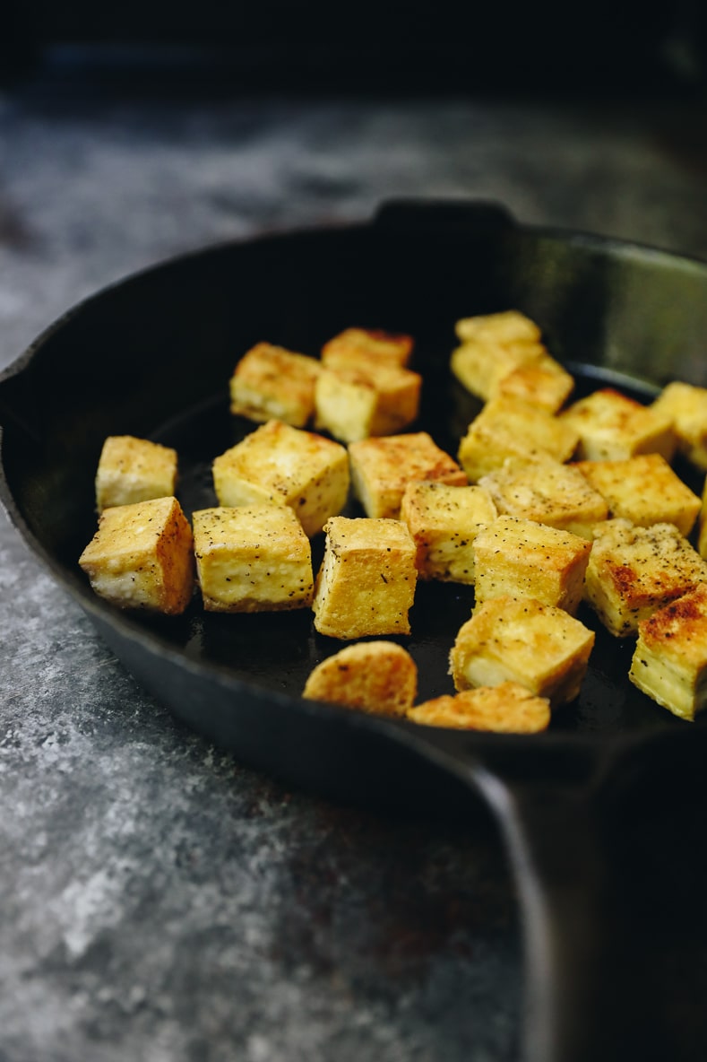- Add the tofu, flipping occasionally until brown all over and crispy, about 5-7 minutes. Remove from skillet and set aside.