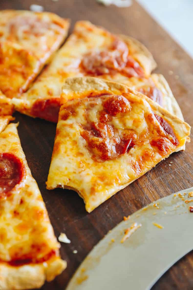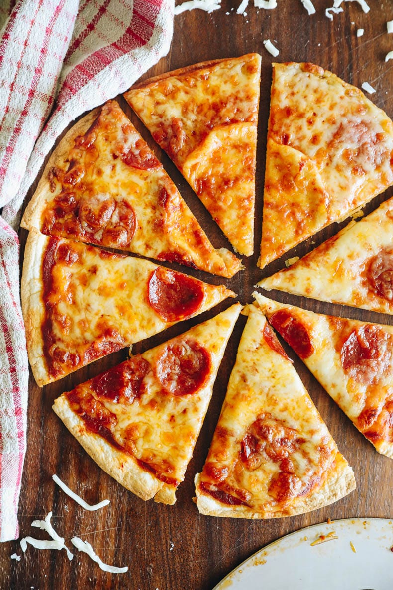 Tortilla pizza is the answer to all your pizza night problems. You simply ditch the pizza dough in favor of a store-bought tortilla and then add your favorite toppings. What you end up with is a perfectly crispy, personal pizza that you and your whole family will be obsessed with. It’s faster and easier than ordering out!